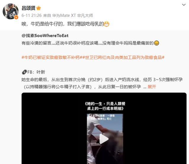 更让人意外的是,他们还开始吃素。这一吃,就是26年。吕颂贤说,有次看到资料,说人更适合吃草,他就试了试,结果觉得挺好,身体轻快,索性坚持下来了。麦景婷也陪着他一起吃素,连牛奶都不碰。前几天,他在微博还发话:“牛奶是给小牛喝的。”这话听着挺逗,但也能看出他对素食的坚持。26年不沾荤腥,得多大毅力啊?