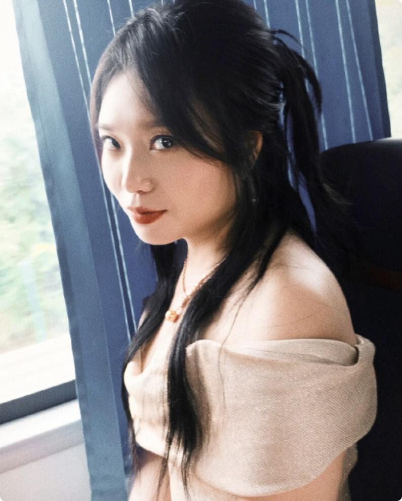她做了一款温柔的长发,整个人气质温婉大方,虽然一开口依旧会耍宝地透露些东北口音,但她的形象真的精致到每一个发梢都在发光